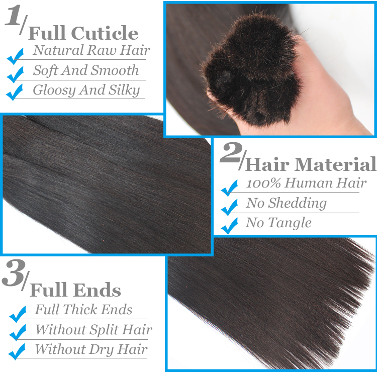 Hair Features | 1. 100% Real Natural Human Hair Used, No Synthetic, No Animal Hair ! 2. Original Human Hair, Soft, Smooth, Glossy, Silky Straight ! |